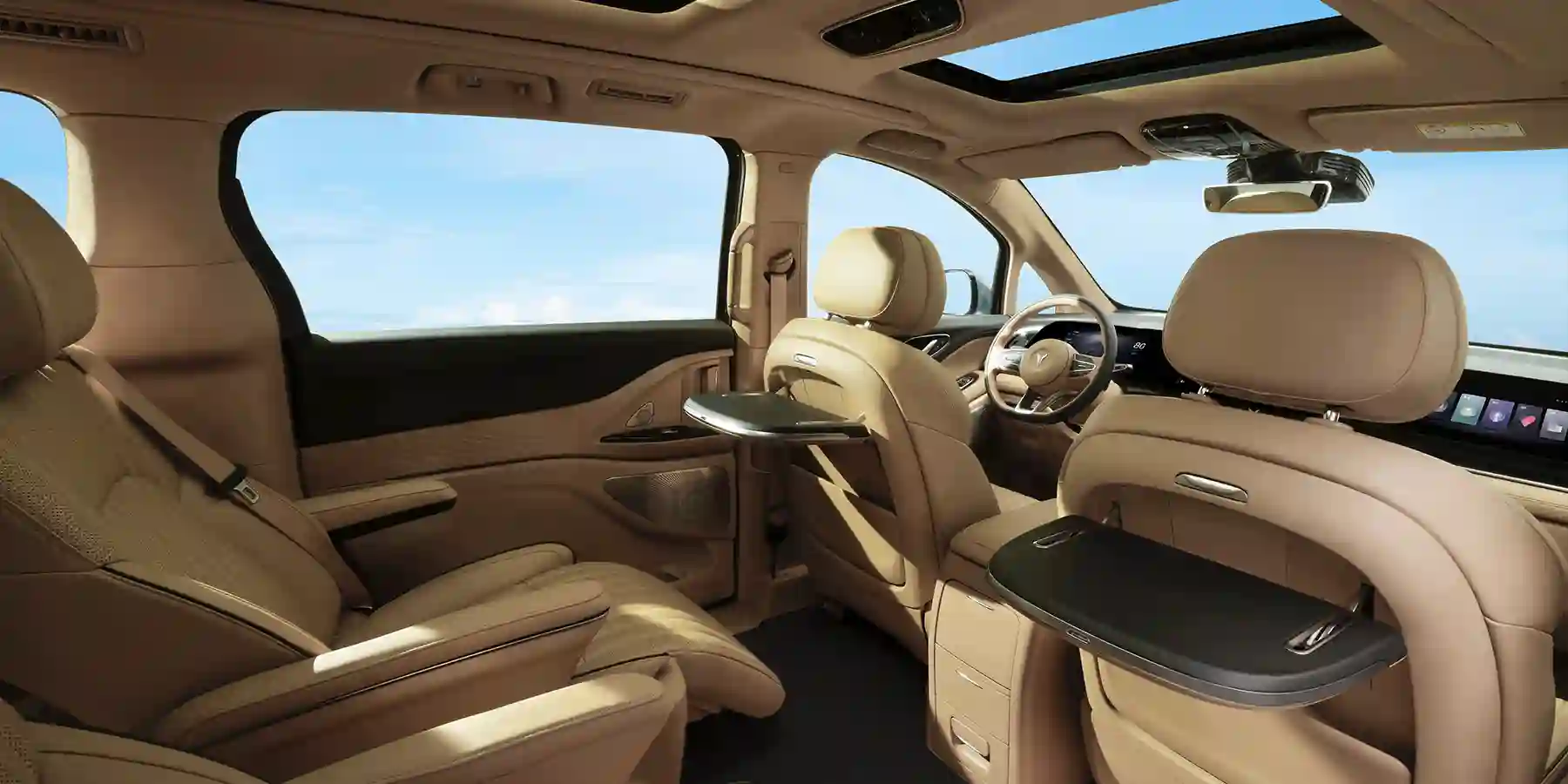 Электрический минивэн VOYAH DREAM EV оборудован тремя инновационными мультимедийными 12,3-дюймовыми дисплеями суммарной шириной 1400 мм, каждый из которых обладает эксклюзивным функционалом. Комфорт обеспечивают двухсекционная панорамная крыша с солнцезащитными шторками, атмосферная подсветка салона с 64 вариантами цветовых решений, а также мощный акустический комплекс Dynaudio премиального уровня с 10 динамиками. Высокоэффективная система кондиционирования дополнена ионизатором воздуха с аромадиффузором, позволяющим менять ароматику салона в зависимости от предпочтений водителя и пассажиров.